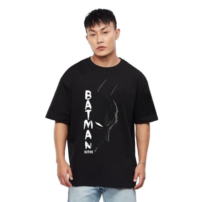 Half Sleeve Oversized Tshirt for Men, Round Neck Cottonblend Drop Shoulder Printed T-Shirt (Black Color)