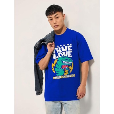 Half Sleeve Oversized Tshirt for Men, Round Neck Cottonblend Drop Shoulder Printed T-Shirt