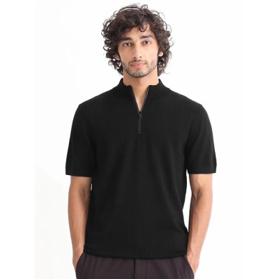 Men's Polo Zipper Collor Neck Regular Fit Matty Half Sleeve Colourblock Multicolour Tshirts Combo (Colour: Black)