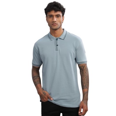 Men Solid Polo Neck Poly Cotton Grey T-Shirt