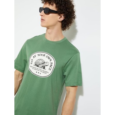 Men Half Sleeves Round Neck Cotton Graphic Print T-Shirt