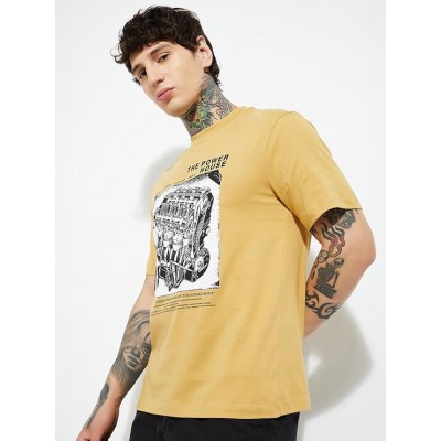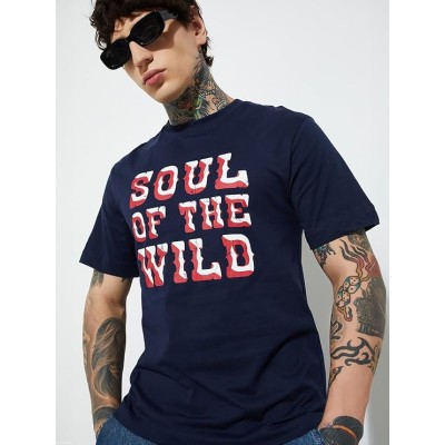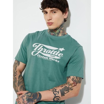 Men Half Sleeves Round Neck Cotton Graphic Print T-Shirt