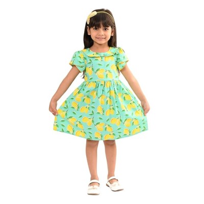 Girls Printed Round Neck Fit & Flare Dress | Cotton Knee Length Half Sleeve Girls Summer Dress for Casual Wear