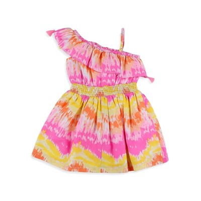 Girls Printed One Shoulder Fit & Flare Dress | Cotton | Age 0–3 Years Pink-Yellow