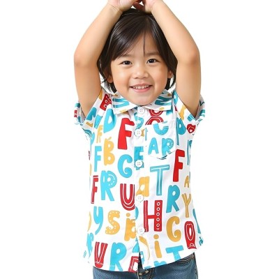 Unisex Kids Casual Printed Shirt | Short Sleeve Polyester Shirt for Boys & Girls | Trendy Comfortable Summer Wear for Children