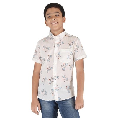 Boy's Summer Cotton Shirts Half Sleeves, Cycle Printed Shirt for Kids Boys