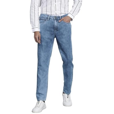 Men's Stretch Fit Mid Rise Carrot Fit Solid Mid-Rise Stretchable Jeans