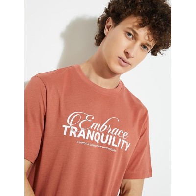 Men Half Sleeves Round Neck Cotton Typographic Print T-Shirt